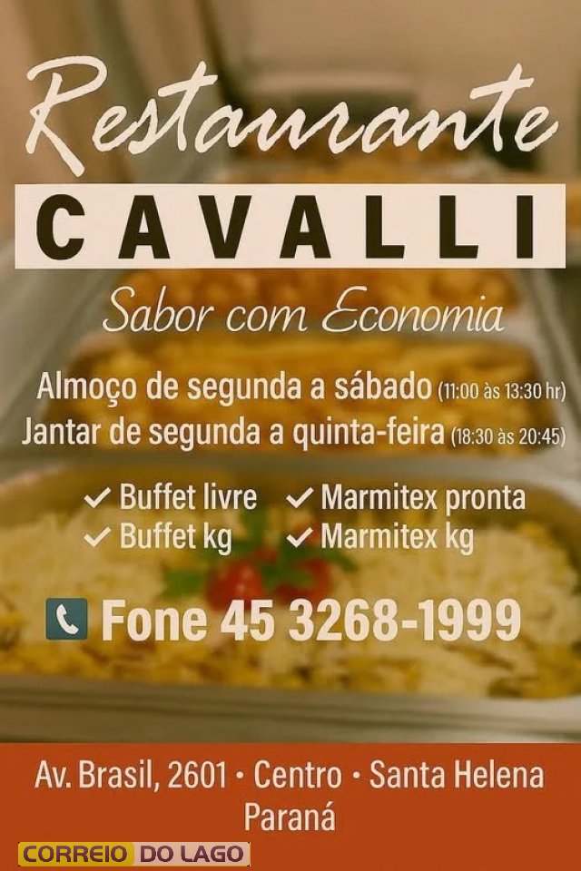 No dia à dia, diversos pratos quentes e frios, com tempero que só o Cavalli sabe proporcionar para o seu paladar. Todo dia, um sabor diferente no capricho das cozinheiras que preparam o alimento com muito amor… E com amor, tem mais sabor.