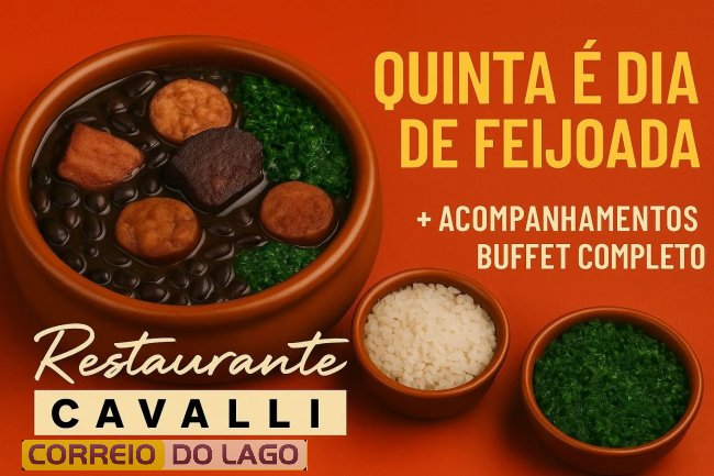 Todas as quintas-feiras, o Restaurante Cavalli tem no seu variado cardápio, a famosa feijoada brasileira, com tudo que tem direito.