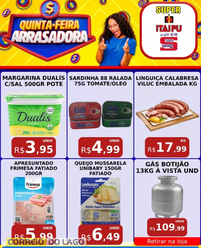 Nesta quinta-feira (26), as lojas reúnem preços especiais em produtos de hortifruti, alimentos de mercearia, frios e itens essenciais do dia a dia. As condições são válidas por tempo limitado, enquanto durarem os estoques, no Super Itaipu e Super Santa Helena.
