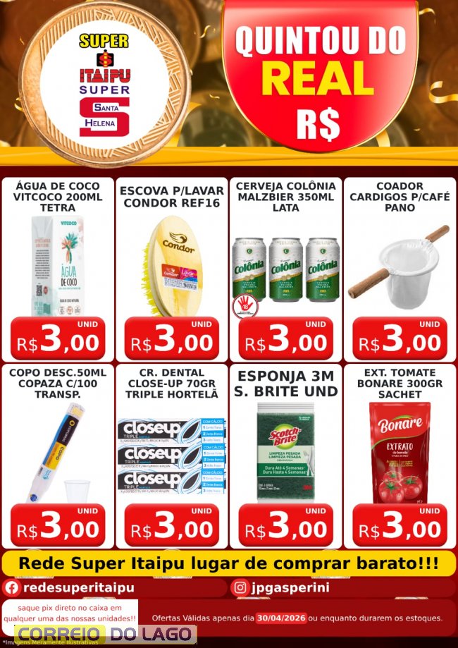 Quintou do Real e Deu a Louca Nos Preços traz variedades de produtos a partir de 1 Real nos Super Itaipu e Super Santa Helena