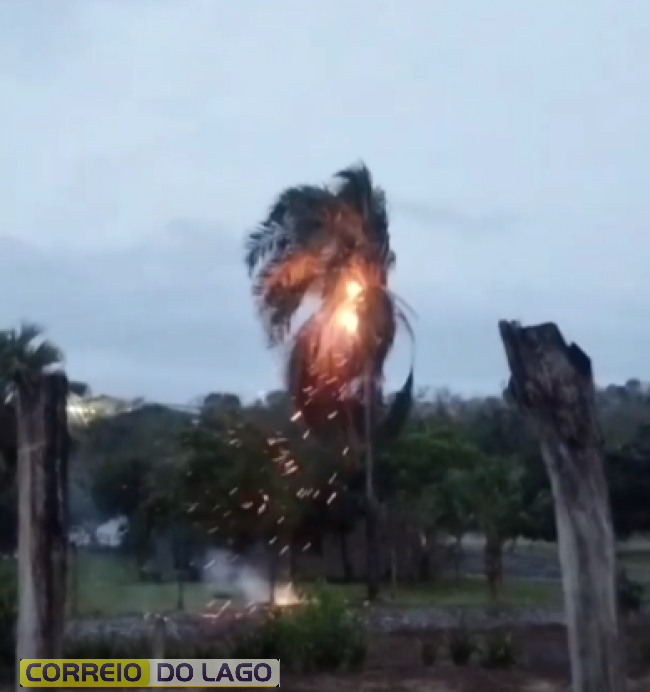 O impacto causou um incêndio imediato na árvore. Um vídeo registrado no local mostra o coqueiro em chamas logo após a descarga elétrica.