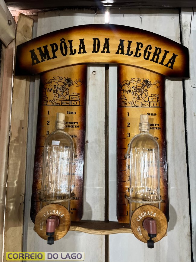 Durante a reportagem, Sabugo apresentou ainda o “pingômetro”, acessório usado para controlar a quantidade de doses servidas. Além das bebidas, o Rancho Crioulo dispõe de outros itens, incluindo cadeiras, artigos em couro e facas.