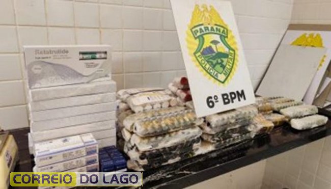 Uma fiscalização na BR-277 terminou com a apreensão de uma grande quantidade de medicamentos de origem paraguaia e a detenção de um rapaz de 26 anos, em Cascavel. A abordagem aconteceu nesta segunda-feira (06), nas proximidades do viaduto do XIV de Novembro, na região do bairro Guarujá.