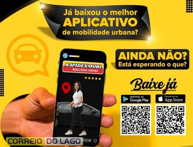 Quem ainda não utiliza o serviço pode baixar o app diretamente pelos QR Codes disponíveis na imagem, com versões para Android e iOS. A proposta é facilitar o deslocamento diário, tornando-o mais acessível e prático para todos.