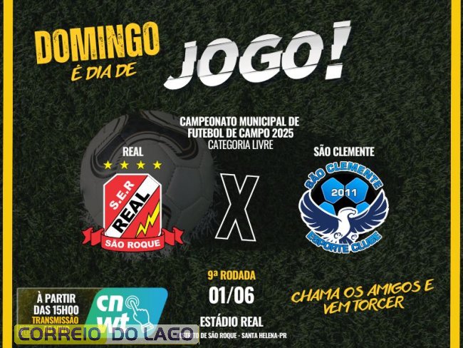 A programação do final de semana inclui disputas decisivas por posições e classificação, com destaque para o confronto entre Real x São Clemente, válido pela 9ª rodada da categoria Livre, que terá transmissão ao vivo pela Click News Web TV neste domingo (01), direto do Estádio do Real, em São Roque.