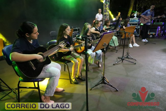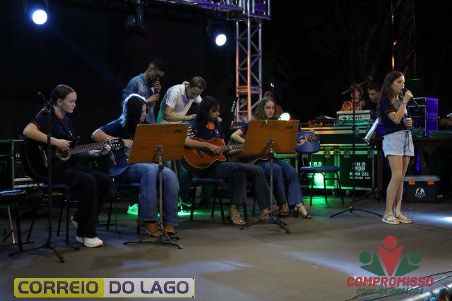 Ocorreram apresentações dos alunos de Viola Caipira e Canto, oficinas iniciadas no mês de agosto de 2025 e que já demonstraram seu potencial. Além destas novas oficinas, alunos de violão, teclado, gaita, gaita ponto e da Fanfarra Municipal encantaram os presentes. Ao final o Papai e Mamãe Noel entregaram doces para as crianças.