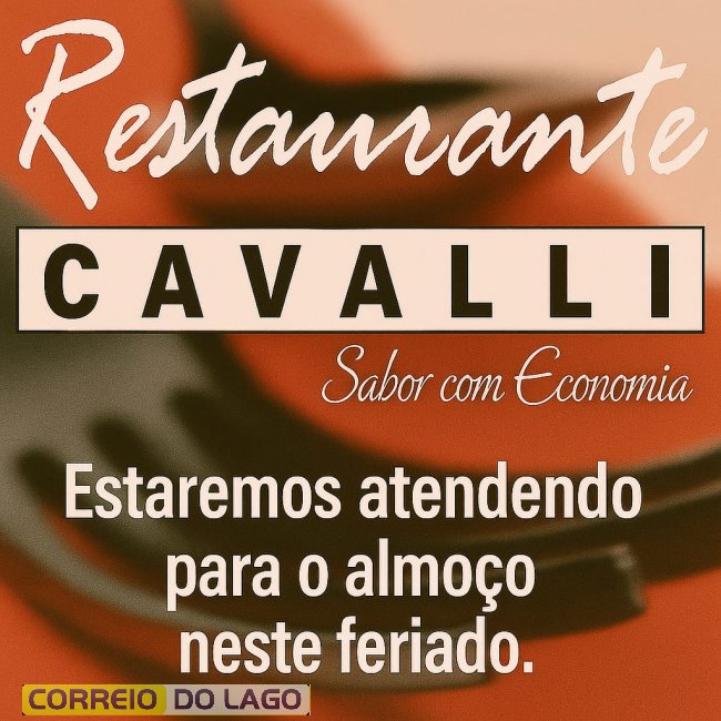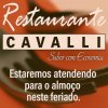A equipe do Restaurante Cavalli comunica a todos os clientes e amigos que atende normalmente nesta quinta-feira (19) para o almoço.