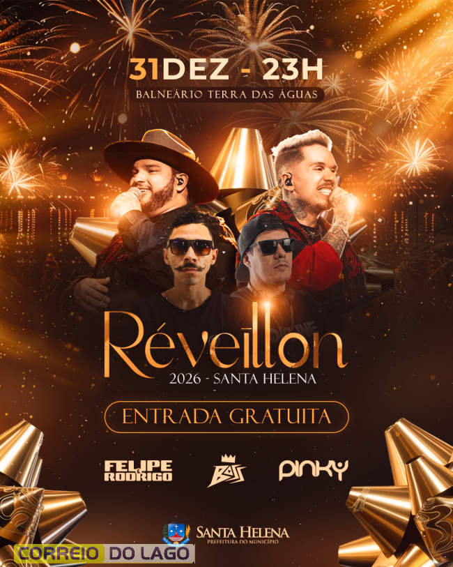 A virada de ano promete ser especial em Santa Helena. A Administração Municipal convida a população e os visitantes da região para celebrar o Réveillon 2026 com uma grande festa no Balneário Terra das Águas, no dia 31 de dezembro, com entrada totalmente gratuita.