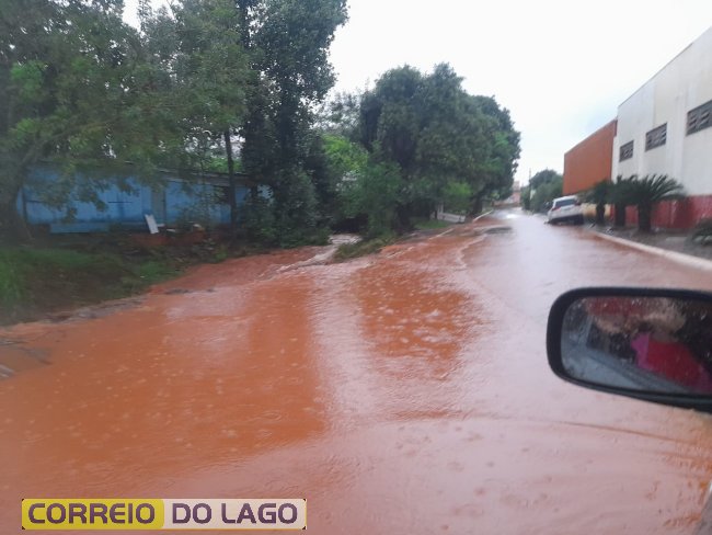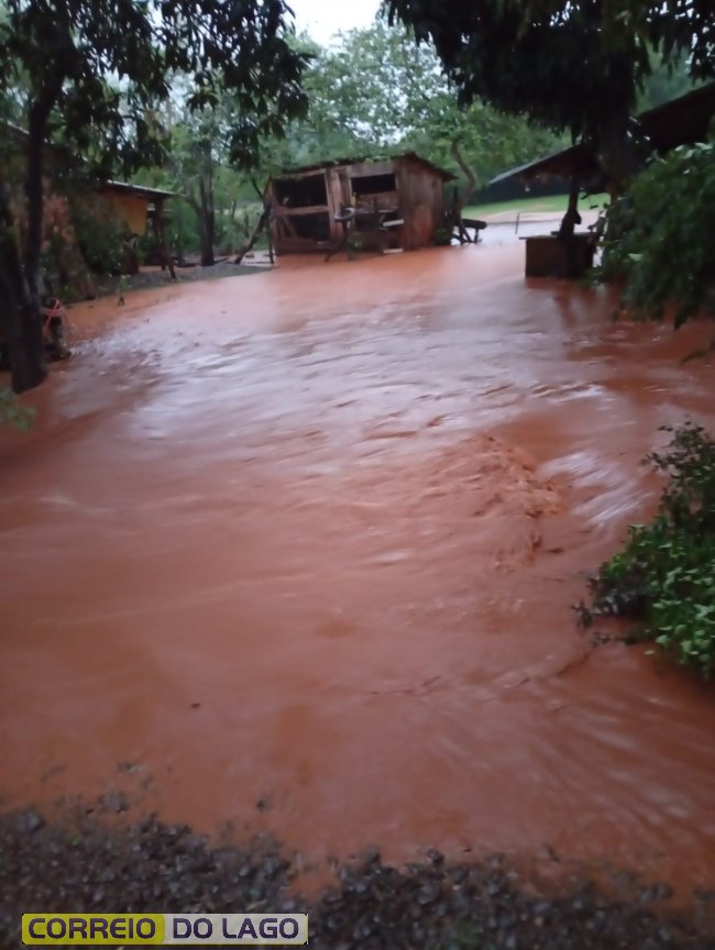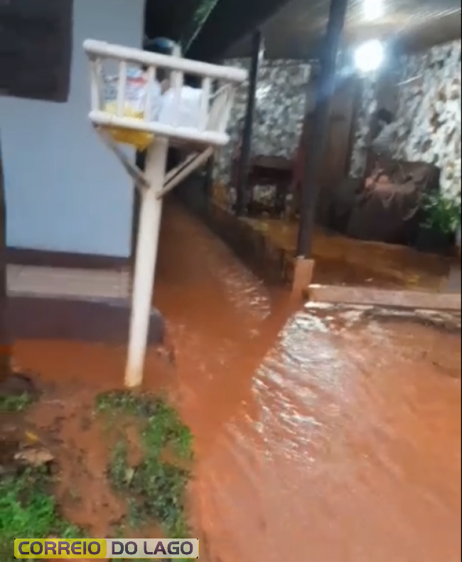 Fotos e vídeos enviados ao Correio do Lago mostram ruas alagadas e casas parcialmente tomadas pela água, evidenciando a gravidade do cenário.
