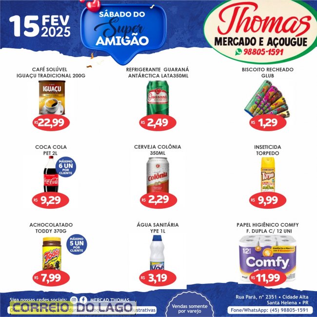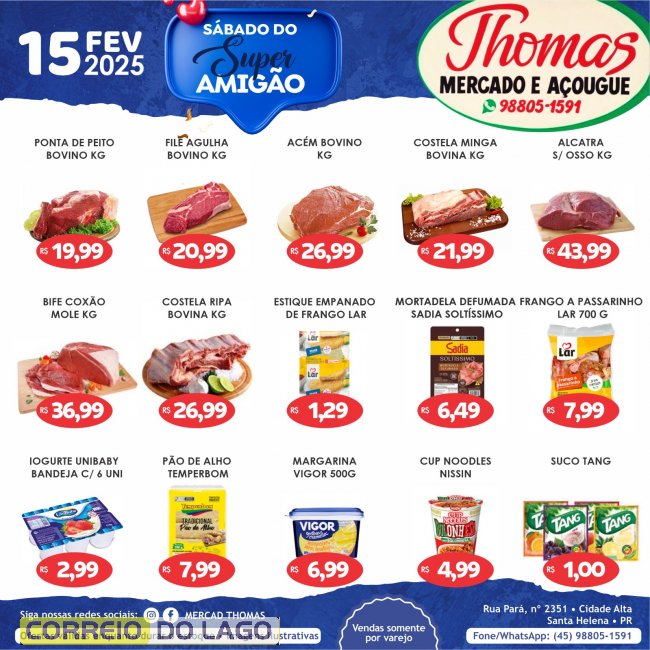 O Mercado e Açougue Thomas preparou muitas ofertas especiais para este sábado (15). Faça suas compras com muita tranquilidade e economia! As ofertas valem enquanto houver estoque!