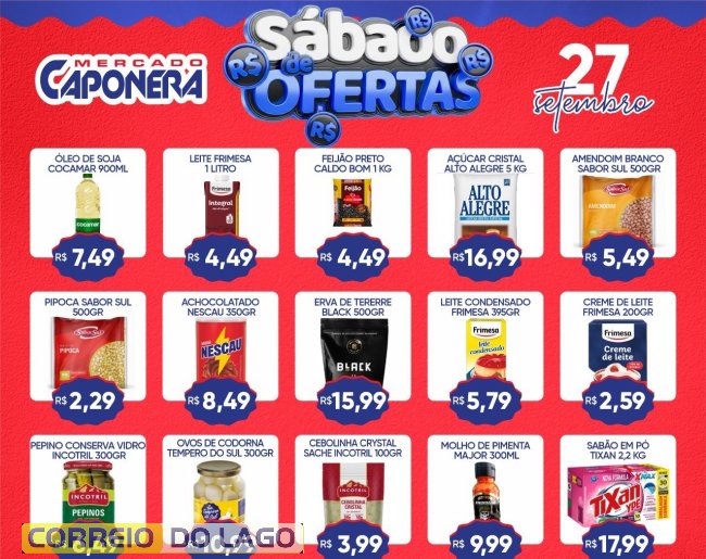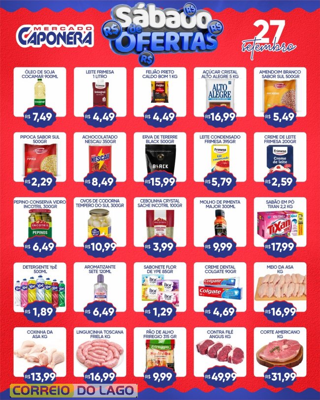 Santa Helena terá um sábado de ofertas no Mercado e Açougue Caponera. Os descontos são válidos apenas neste sábado (27), com produtos frescos e preços especiais para os clientes.