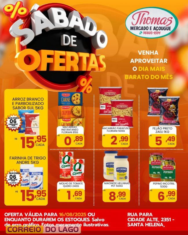 O Mercado e Açougue Thomas preparou muitas ofertas especiais para este sábado (16)!