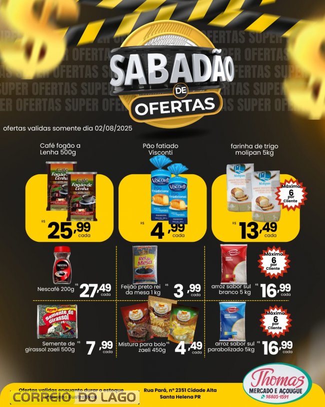 Sábado imbatível de ofertas no Mercado e Açougue Thomas! Encha seu carrinho e economize