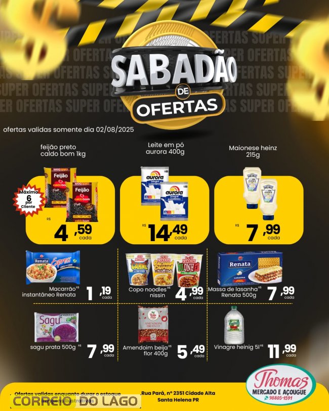 O Mercado e Açougue Thomas preparou muitas ofertas especiais para este sábado (02)!