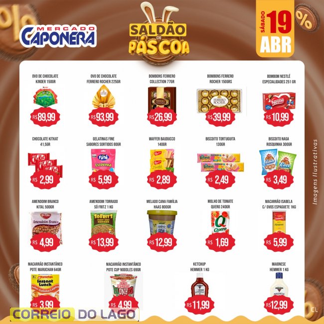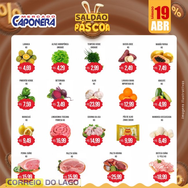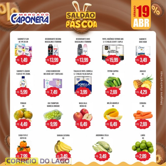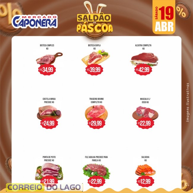 O Mercado e Açougue Caponera preparou um verdadeiro Saldão de Páscoa neste sábado (19), com atendimento das 7h30 às 19h e ofertas imperdíveis para deixar sua celebração ainda mais saborosa!