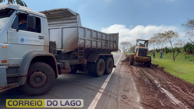 Nesta quarta-feira (27), Santa Helena deu continuidade à segunda etapa da obra de melhorias nos acostamentos entre o município e o distrito de Sub Sede, próximo à ponte. O trabalho visa ampliar a segurança viária e reduzir o risco de acidentes em um trecho com alto fluxo de veículos.