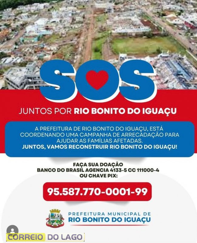 • Prefeitura de Rio Bonito do Iguaçu – Banco do Brasil: Agência 4133-5 | CC 111000-4 | Chave Pix: 95.587.770/0001-99