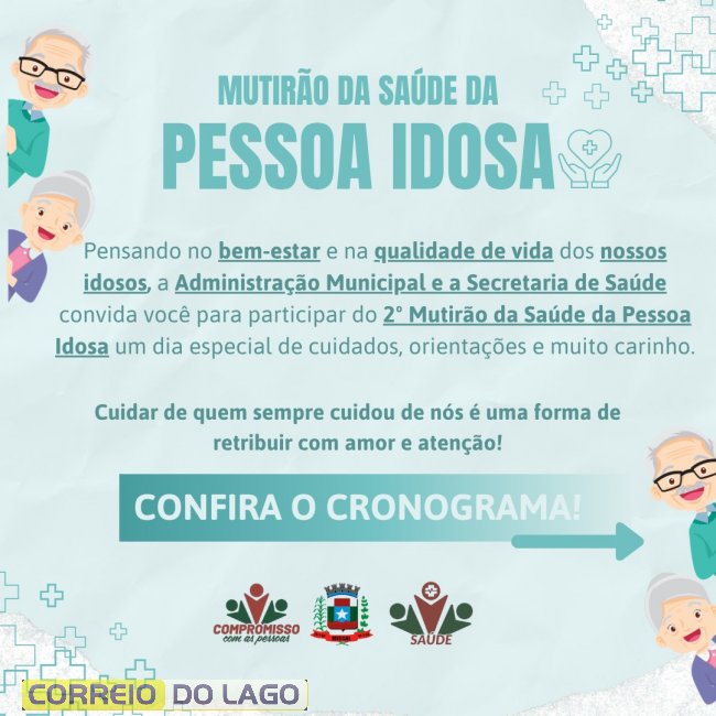 Vale destacar que no dia do Mutirão, não haverá atendimento na respectiva unidade de Saúde, já que toda a equipe irá se deslocar para desenvolver as ações estabelecidas.
