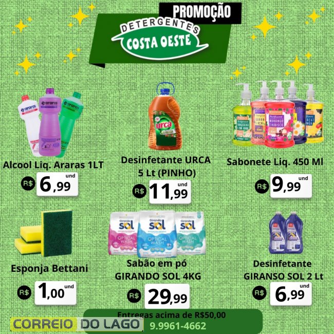 Semana de economia em itens de limpeza na Detergente Costa Oeste, em Santa Helena. Corra e aproveite!