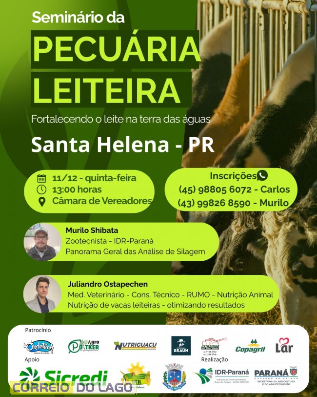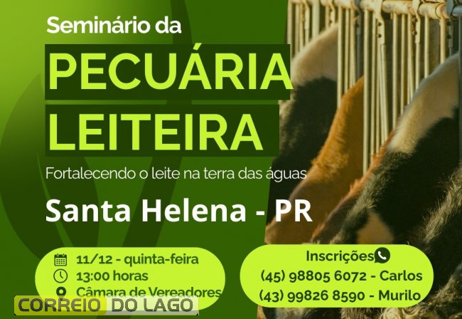 O seminário terá início às 13h, na Câmara de Vereadores de Santa Helena, e a participação é gratuita. Os interessados devem se inscrever online pelo link https://forms.gle/FisDRcQqrVtphe5EA ou entrar em contato pelos telefones (45) 98805-6072 (Carlos) e (43) 99826-8590 (Murilo). O evento é uma oportunidade para aprimorar conhecimentos, aumentar a produtividade da sua propriedade e se conectar com outros produtores da região.