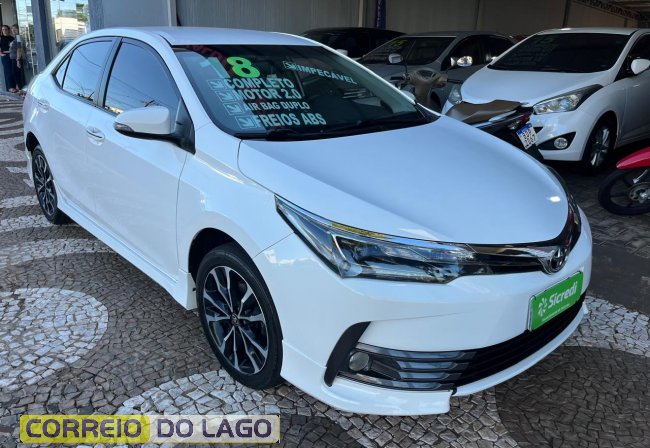 Outro modelo que chama atenção é o Toyota Corolla XRS 2.0 Flex Automático 2018. Completo, com ar-condicionado automático, chave presencial, câmbio de 10 velocidades com modo manual, bancos em couro, volante multifuncional, assistente de partida em rampa e controles avançados de estabilidade e tração. Além de conforto, oferece tecnologias como multimídia digital, GPS e diversos sistemas de segurança, todos avaliados e aprovados em perícia técnica.
