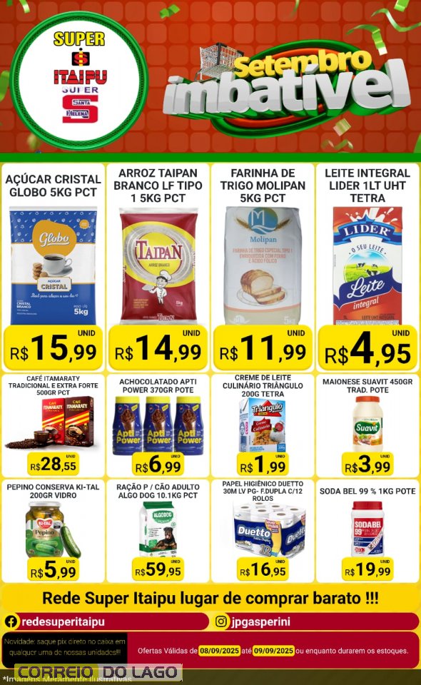 Setembro imbatível do Super Itaipu e Super Santa Helena garante preços baixos nesta terça-feira