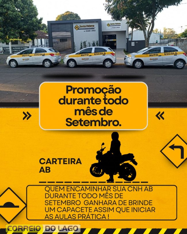 Durante todo o mês de setembro, quem encaminhar sua CNH nas categorias A ou B no CFC Santa Helena ganhará de brinde um capacete novo assim que iniciar as aulas práticas. A promoção incentiva a direção segura e valoriza os alunos do centro de formação.