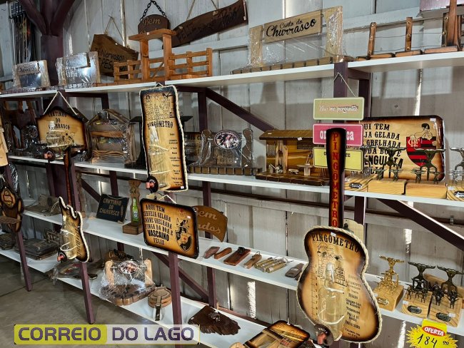 A linha de servir também chama atenção, com variedade de produtos como tábuas de corte e para frios, gamelas de madeira para petiscos e placas decorativas com diversos temas, perfeitas para dar personalidade ao espaço.