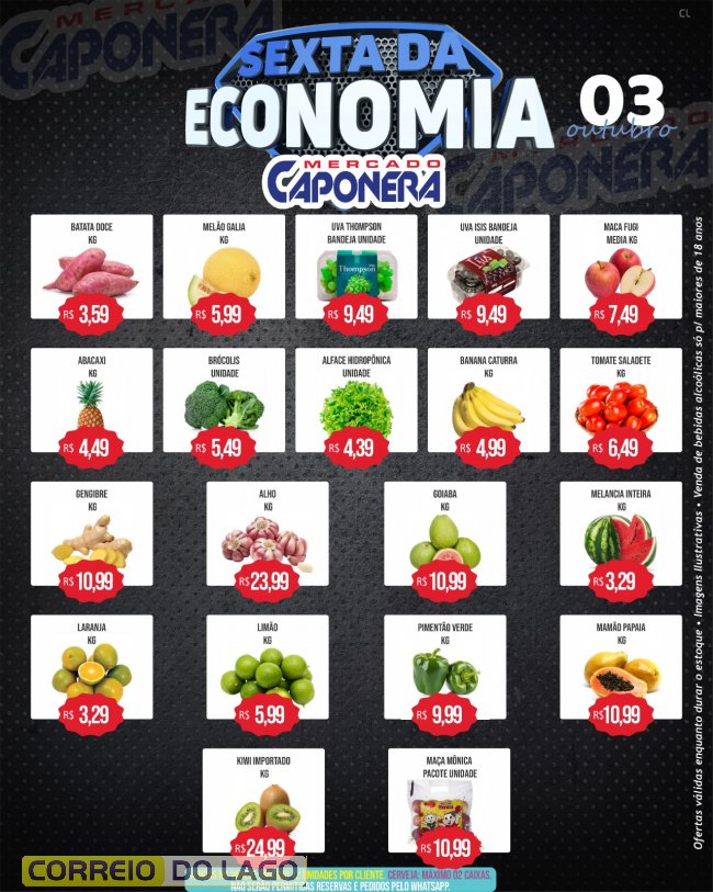 Nesta sexta-feira (3), o Mercado e Açougue Caponera em Santa Helena, realiza a Sexta da Economia, disponibilizando ofertas especiais em diversos produtos para os clientes.