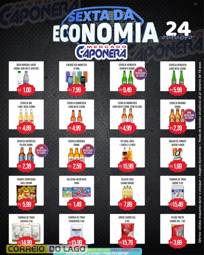 Nesta sexta-feira (24), o Mercado e Açougue Caponera em Santa Helena, realiza a Sexta da Economia, disponibilizando ofertas especiais em diversos produtos para os clientes.