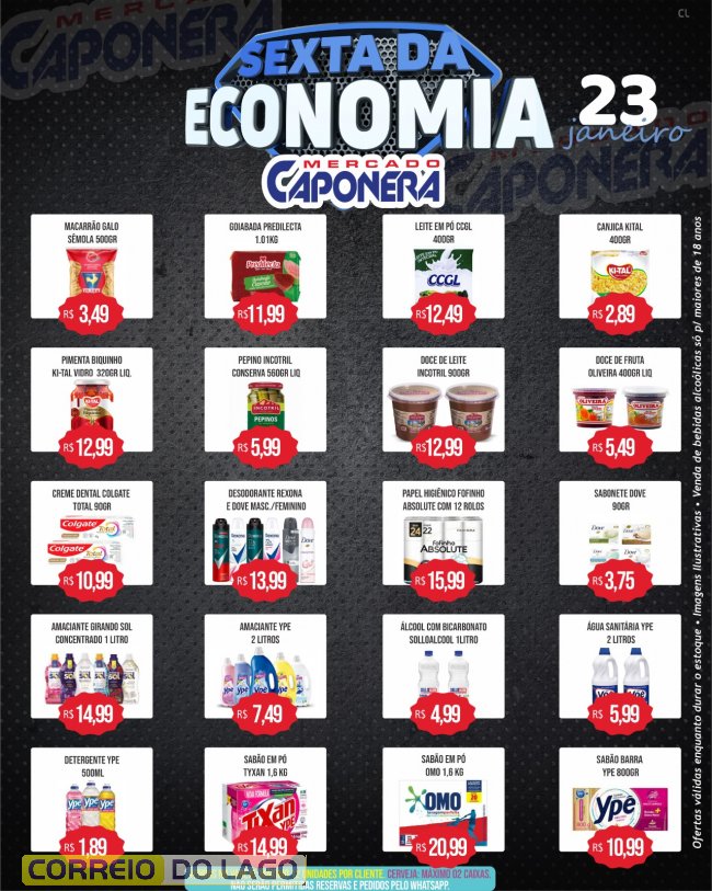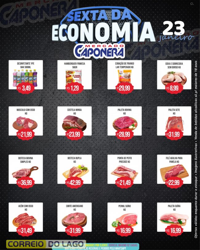 Nesta sexta-feira (23), o Mercado e Açougue Caponera realiza a sexta da economia, com ofertas especiais válidas somente hoje ou enquanto durarem os estoques, proporcionando mais economia aos consumidores de Santa Helena e região.