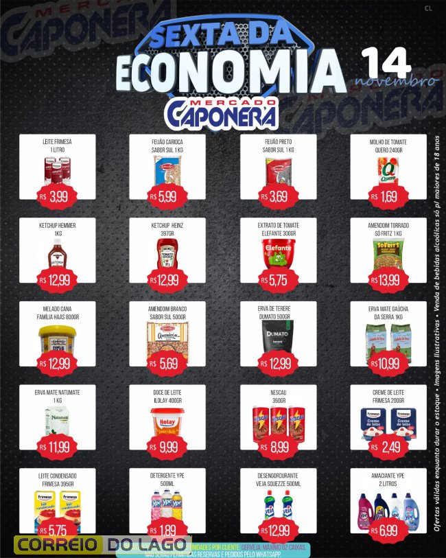 O Mercado e Açougue Caponera preparou muitas ofertas para você nesta sexta-feira (14). Esta é a oportunidade perfeita para abastecer a despensa de casa com os melhores preços da região! Confira a lista.