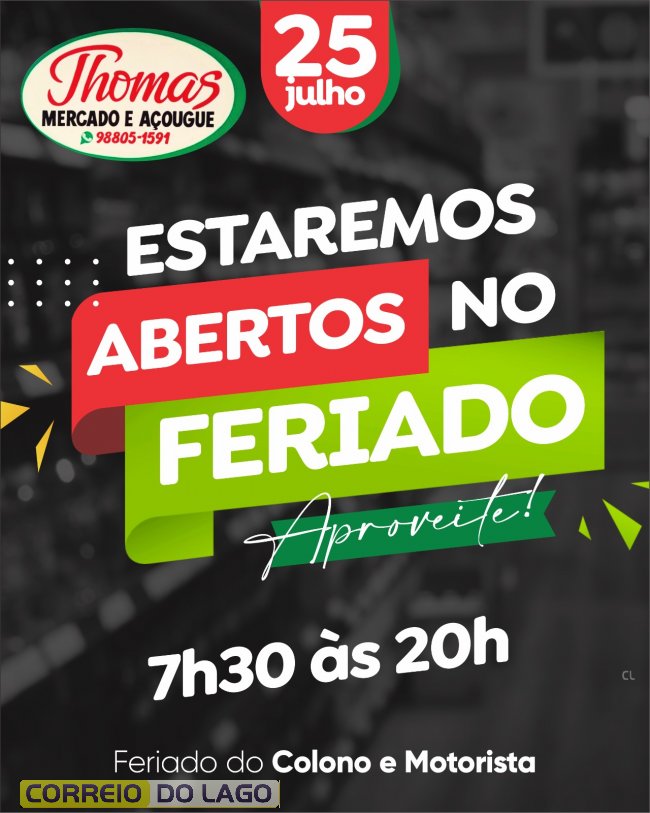 O Mercado e Açougue Thomas preparou muitas ofertas especiais para esta sexta-feira, 25 de julho, feriado do Dia do Colono e do Motorista em Santa Helena.