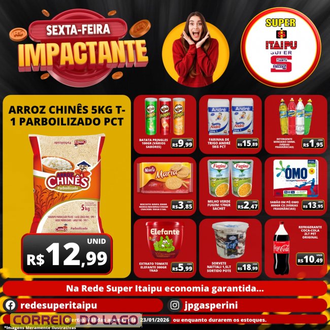 Nesta sexta-feira (23), o Super Itaipu e o Super Santa Helena apresentam os encartes Sexta-feira Impactante e Esquenta de Carnaval, com ofertas especiais para quem quer fazer as compras com tranquilidade e economia. São preços baixos em diversos produtos, garantindo praticidade, variedade e boas oportunidades para preparar o Carnaval e abastecer a casa sem pesar no bolso.