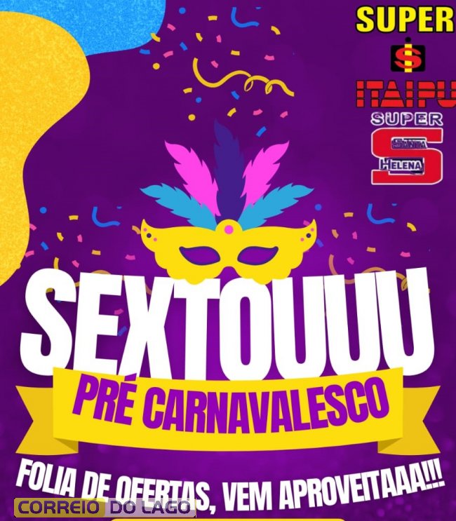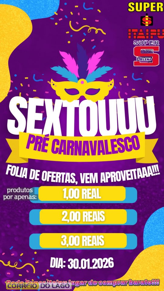 Nesta sexta-feira (30) acontece o sextou pré-carnavalesco, ação que movimenta o comércio local em Santa Helena com foco na economia do dia a dia. A campanha ocorre no Super Itaipu e no Super Santa Helena e reúne produtos com preços populares a partir de um real, atraindo consumidores da cidade e da região.