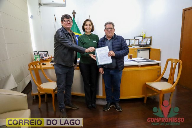A nova gerente do Sicredi Vanguarda, Unidade de Missal, Elaine Sanders esteve na manhã desta sexta-feira, 08 de agosto, reunida com o Prefeito Ferrari e vice-prefeito Chenho a fim de solicitar a autorização para a instalação de uma Estação de Hidratação e um relógio de rua no Lago Municipal de Missal.
