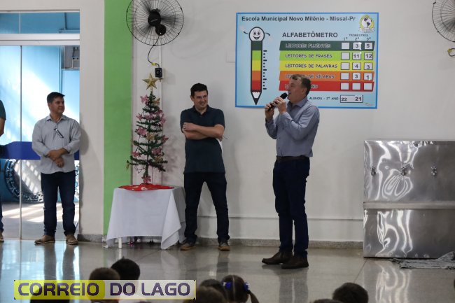 Estiveram presentes o Prefeito Ferrari e 1ª Dama, Fátima Ferrari, O presidente da Câmara, Elias Andrade e o Vereador Custódio Luiz, o Diretor de negócios da Sicredi, Luís Dickel, a Gerente de Agência de Missal, Elaine Sanders, a Secretária Municipal de Educação, professora Clarice e a Presidente da APMF, Ana Claúdia Moresco.