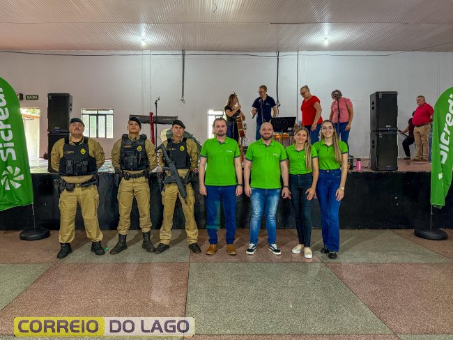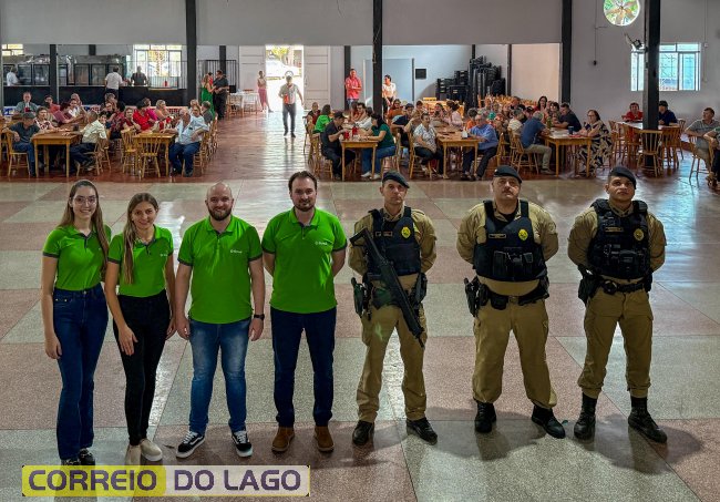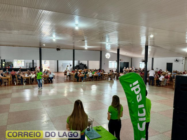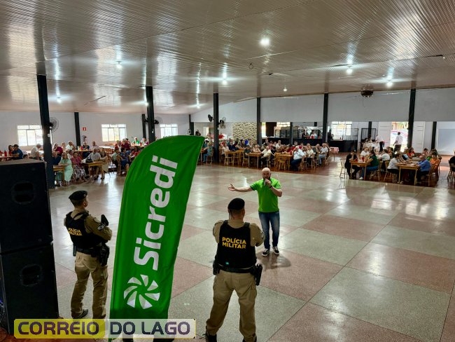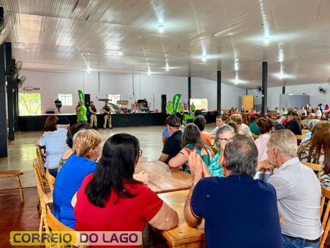 O evento foi realizado no clube do distrito e contou com a presença de um público expressivo. Durante a programação, o assessor de Segurança da cooperativa, Odinei Grasele, e o gerente da agência, Eduardo Staudt, apresentaram orientações sobre como identificar e evitar tentativas de fraude, especialmente entre o público mais vulnerável. Foram abordados temas como golpes por telefone, mensagens falsas, falsas centrais de atendimento e cuidados com dados pessoais.