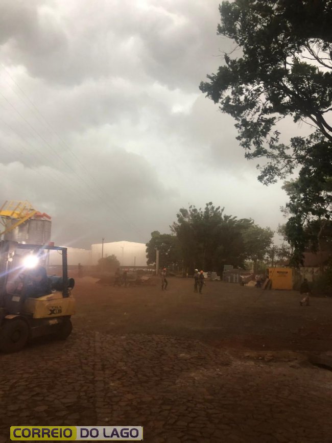 A força do vento registrada na tarde desta segunda-feira (16) provocou a queda de um secador de silo na comunidade de Santa Inês, no interior de Itaipulândia.