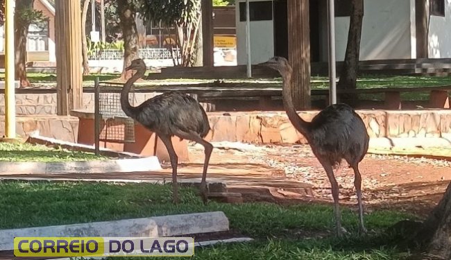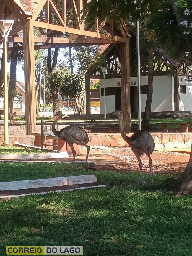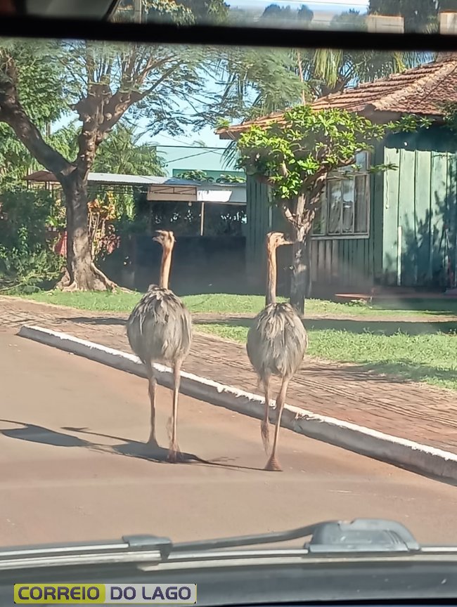 Na manhã desta quarta-feira (10), por volta das 10h, moradores de Entre Rios do Oeste avistaram duas emas circulando livremente pela cidade. As aves foram vistas inicialmente próximas à praça central e, posteriormente, no próprio espaço público.