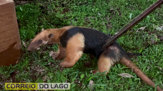 Na tarde deste sábado (21), um tamanduá-mirim foi capturado pela Defesa Civil de Santa Helena após ser encontrado em uma propriedade localizada na Sanga Natal, no interior do município.
