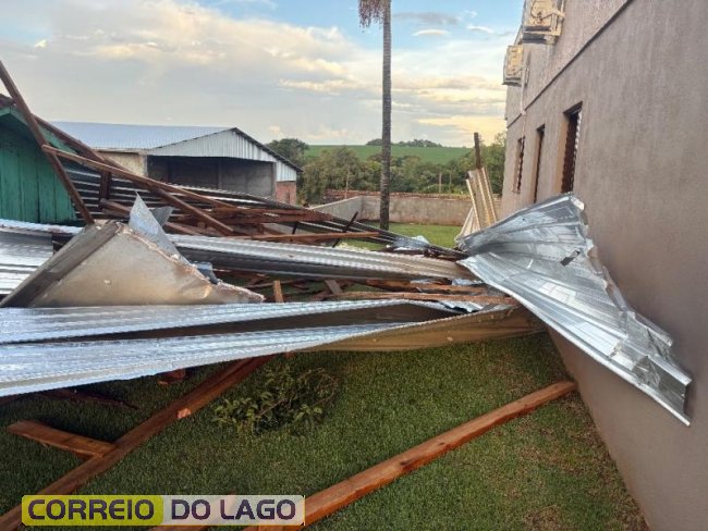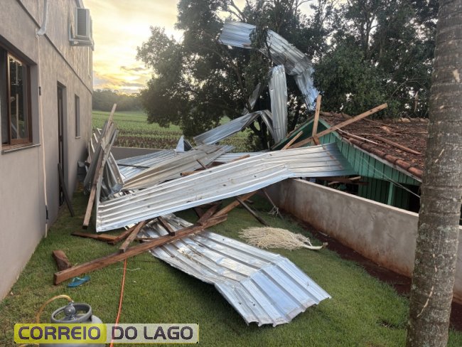 Em outra propriedade rural na Sanga XV, vários estragos foram registrados. O telhado da residência foi completamente arrancado, com telhas parando a cerca de 100 metros do imóvel.