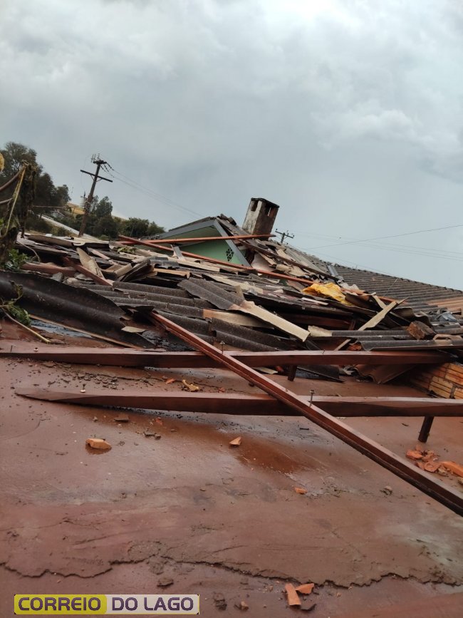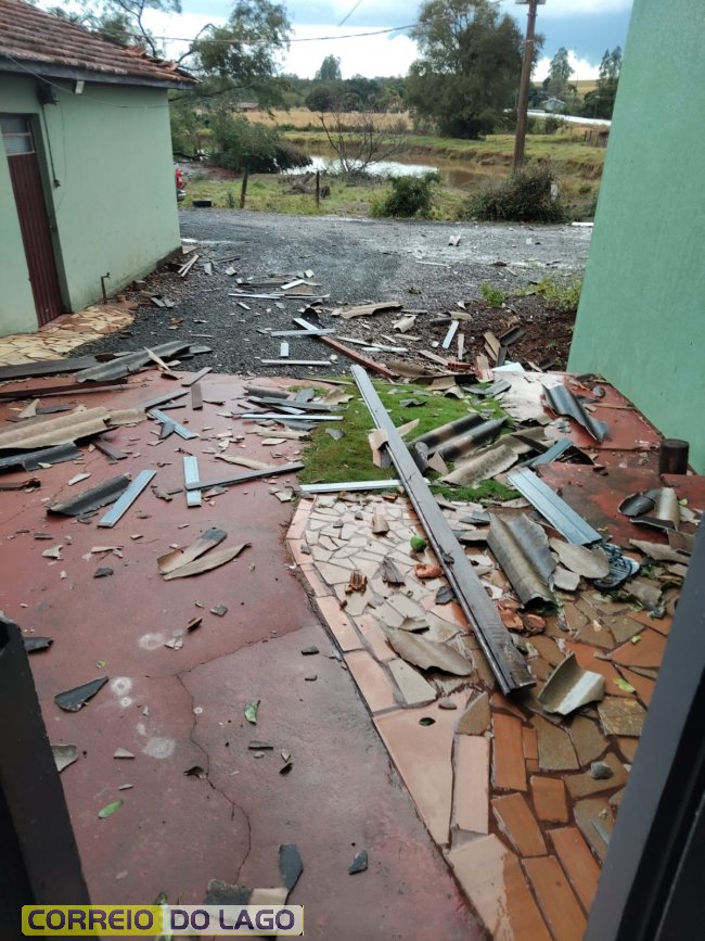 Os ventos intensos destelharam vária casas, galpões e possilgas de chiqueirões, além de danificarem outras estruturas agrícolas. Árvores foram derrubadas e postes da rede elétrica acabaram caindo, interrompendo o fornecimento de energia para diversas propriedades da região.