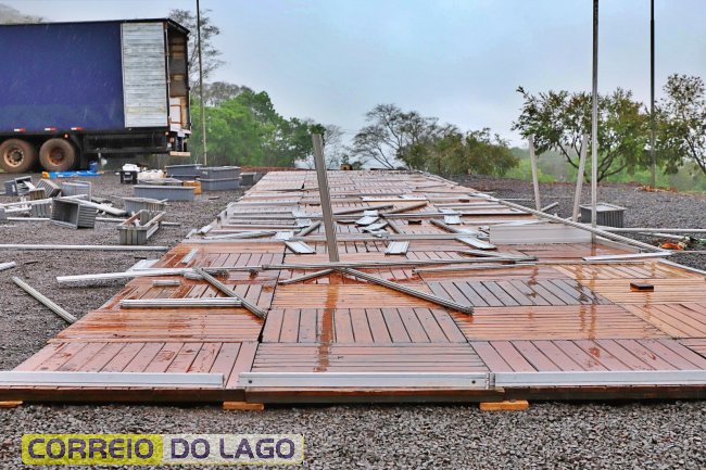 Membros da Comissão de Coordenação das festividades e representantes da Secretaria de Turismo e Lazer do município acompanharam a situação. A empresa responsável pela estrutura já iniciou os trabalhos de recuperação para garantir a continuidade da programação prevista.