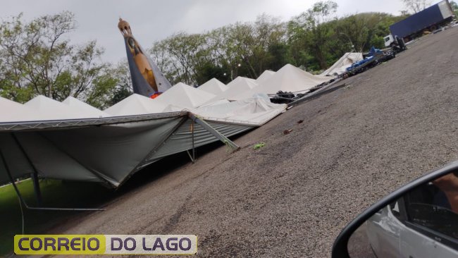 As tendas e demais instalações que estavam sendo finalizadas no local foram derrubadas pela força do vento, surpreendendo as equipes que trabalhavam na montagem. Apesar do susto, não houve registro de feridos.