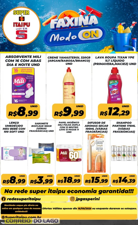 Terça da Faxina Modo On é no Super Itaipu e Super Santa Helena com ofertas imperdíveis para você