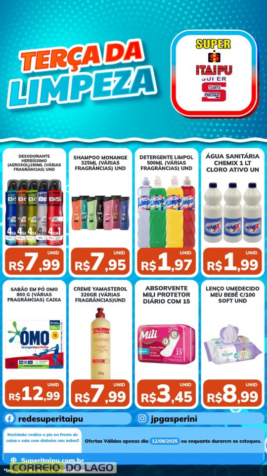Terça da Limpeza é no Super Itaipu e Super Santa Helena com ofertas imperdíveis para você