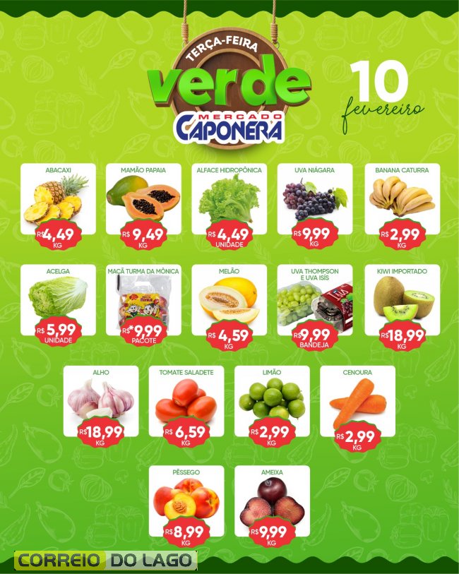 Terça Verde é no Mercado Caponera: ofertas especiais em frutas, verduras e legumes fresquinhos!