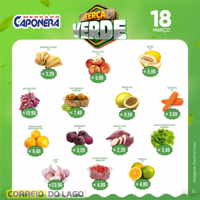 Nesta terça-feira (18), o Mercado e Açougue Caponera preparou uma promoção especial para você economizar sem abrir mão da qualidade. A seção de hortifruti está repleta de ofertas exclusivas, com frutas, verduras e legumes fresquinhos a preços imperdíveis.