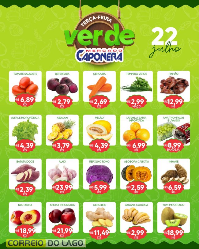 Nesta terça-feira (22), o Mercado e Açougue Caponera, em Santa Helena, preparou uma promoção especial para você economizar sem abrir mão da qualidade. A seção de hortifruti está repleta de ofertas exclusivas, com frutas, verduras e legumes fresquinhos a preços imperdíveis.